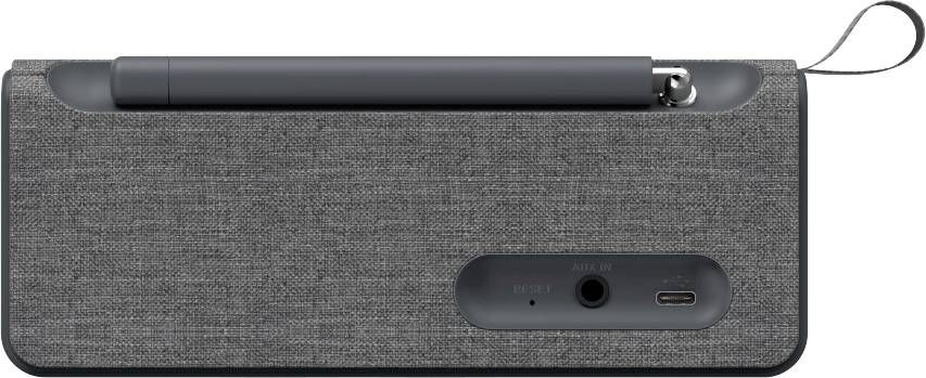 Зрозуміла панель керування з нековзними програмними кнопками містить усі важливі функції, що забезпечує інтуїтивно зрозуміле керування цифровим радіо. Інформацію про радіостанції, наприклад, назви пісень та останні новини, можна прочитати на 2,4-дюймовому кольоровому дисплеї з підсвічуванням. Стаціонарна телескопічна антена забезпечує стабільний прийом. Радіоприймач DAB відрізняється не лише простотою використання, але й вражаючим дизайном. Завдяки елегантним тканинним секціям та естетично привабливій округлій формі, наше цифрове радіо підходить для будь-якого житлового середовища. Завдяки особливій структурі поверхні, воно не залишає непривабливих відбитків пальців на конверті. Компактне цифрове радіо розміром 18 x 6 x 6,8 см ідеально підходить для місць з обмеженим вільним простором, наприклад, на кухні або на тумбочці біля ліжка.