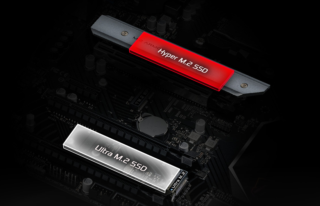 Ця материнська плата готова до підключення різноманітних пристроїв M.2, включно з підтримкою твердотільних накопичувачів PCI Express 4.0 M.2, які працюють на вдвічі вищій швидкості, ніж попередні накопичувачі 3-го покоління, забезпечуючи блискавичну швидкість передачі даних.