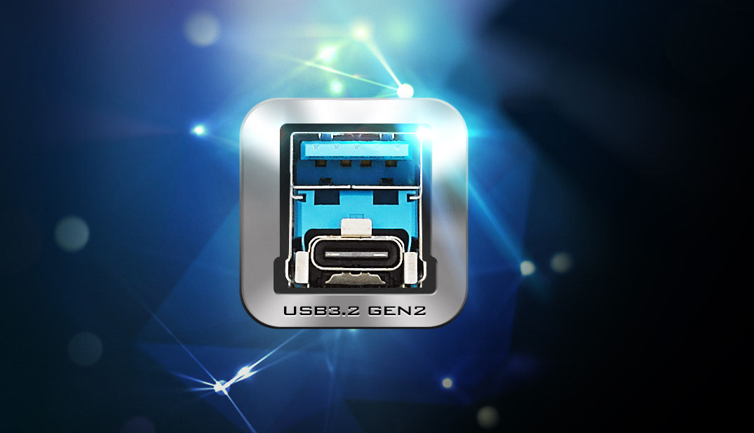 Ця материнська плата оснащена вбудованими портами USB 3.2 Gen2 Type-A і Type-C на задній панелі вводу/виводу для підтримки пристроїв наступного покоління USB 3.2 Gen2 зі швидкістю передачі даних до 10 Гбіт/с.