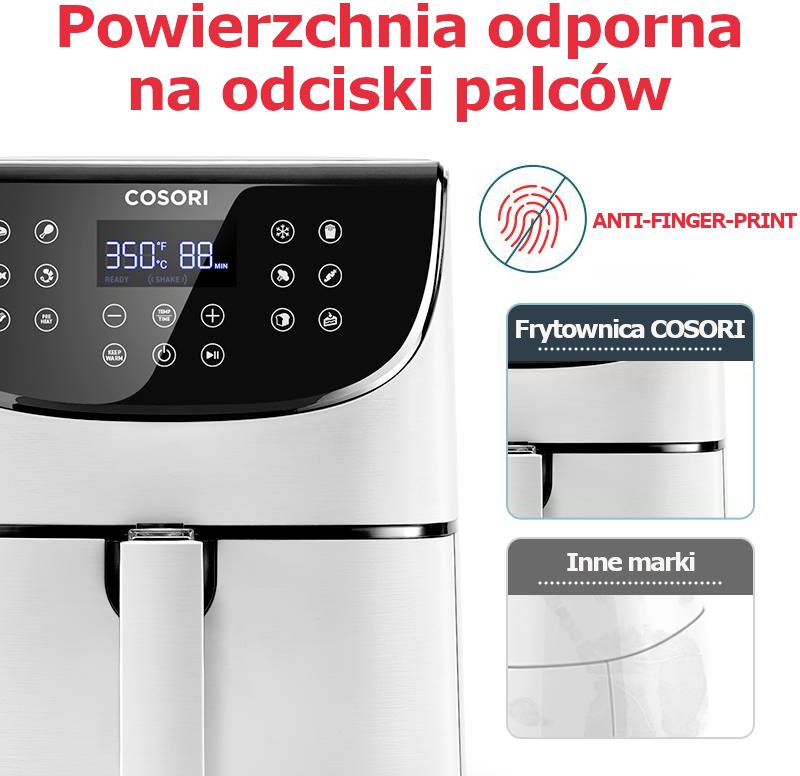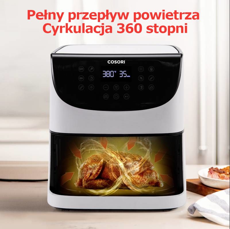Чудовий пристрій для людей, які піклуються про своє здоров'я та фігуру :) Cosori - це пристрій для людей, які піклуються про здоров'я і ведуть здоровий спосіб життя, але також є любителями смаженої їжі. Cosori зменшує надлишок калорій, пов'язаних з традиційним смаженням, зменшуючи кількість жиру до 90%. Завдяки Cosori ви можете піклуватися про своє здоров'я і готувати улюблені страви в набагато більш здоровому варіанті. Поєднання циркулюючого повітря і правильної температури гарантує, що їжа буде готова швидко, рівномірно підрум'янена, хрустка зовні і ніжна всередині.