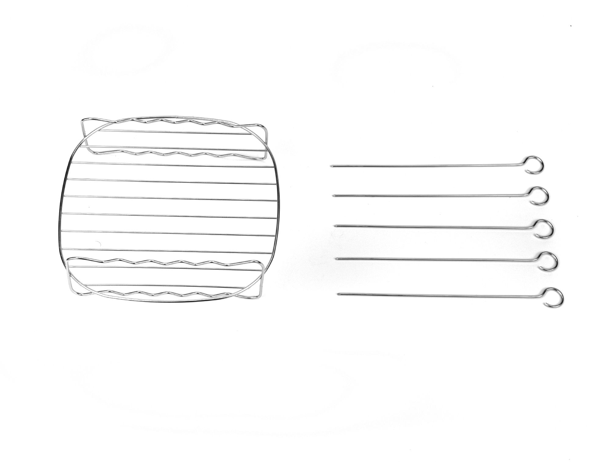 БЕЗКОШТОВНО! :) У комплекті з фритюрницею ви додатково отримаєте 5 голок для шампурів, решітку-гриль та книгу рецептів (англійською мовою).