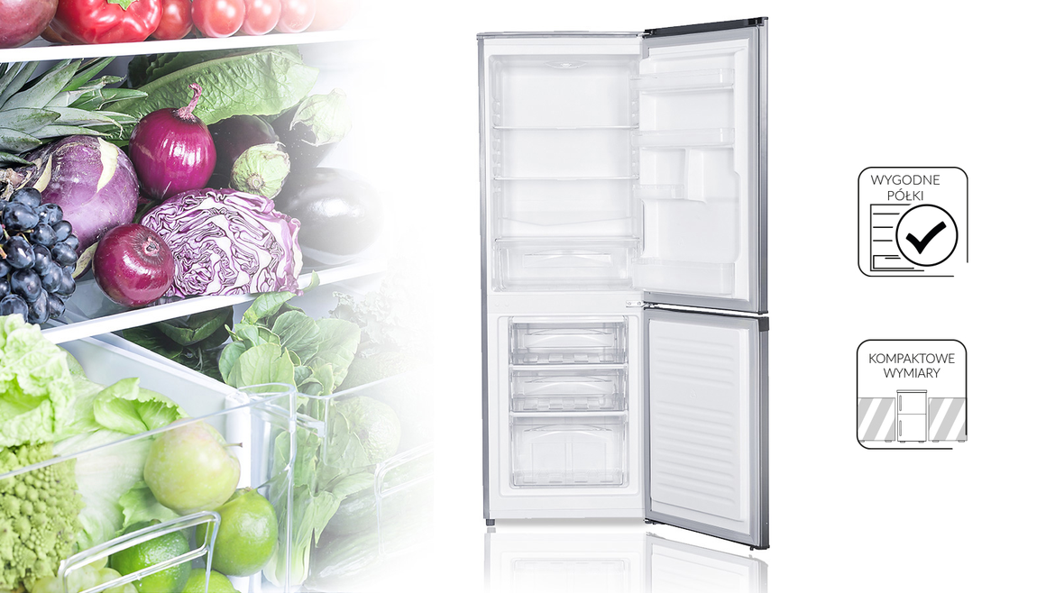 Холодильник MPM-182-KB-33/AA має просторий і добре обладнаний внутрішній простір. У холодильнику ви знайдете 3 полиці, висувний контейнер і полиці на дверцятах. Морозильна камера містить 3 відділення, які ідеально підходять для зберігання запасів продуктів в тому числі одне, пристосоване для продуктів великих розмірів або нестандартної форми. Холодильник MPM - це компактне рішення для вашої кухні. Невеликі розміри поєднуються з великою функціональністю.