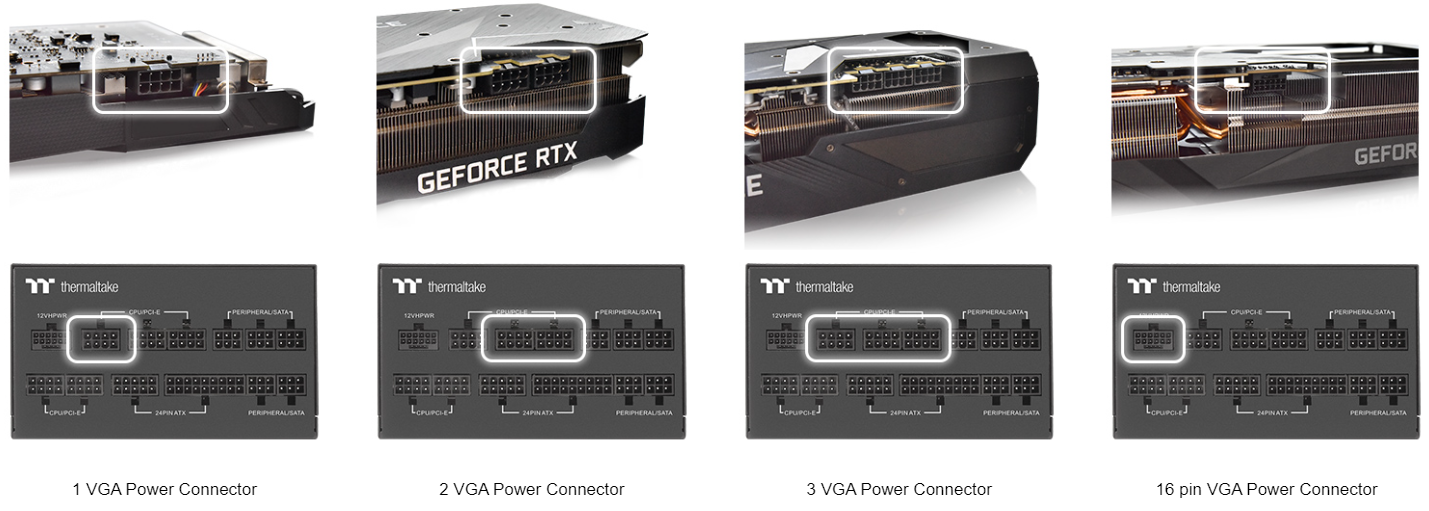 Зі збільшенням енергоспоживання відеокарт зростають і їхні вимоги до живлення. Серія GF3 розроблена для підтримки відеокарт NVIDIA та AMD і готова забезпечити різні способи підключення відеокарти до блоку живлення.
