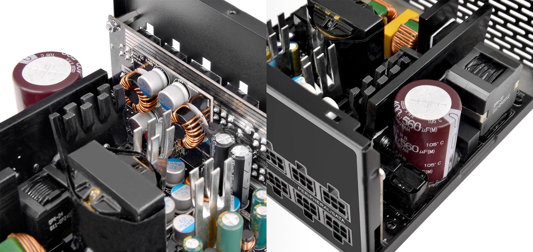 Високоякісний японський основний конденсатор значно збільшує термін служби блоків живлення серії Toughpower GF і забезпечує їм чудову стабільність і надійність. Завдяки конструкції DC-DC, блок може оптимізувати максимальний збір енергії для вашої системи. Наприклад, ефективно змінювати рівні напруги на 12 В, 5 В і 3 В та підлаштовувати навантаження під джерело живлення. Потужна одинарна шина +12 В забезпечує стабільне та надійне живлення для всіх компонентів комп'ютера.