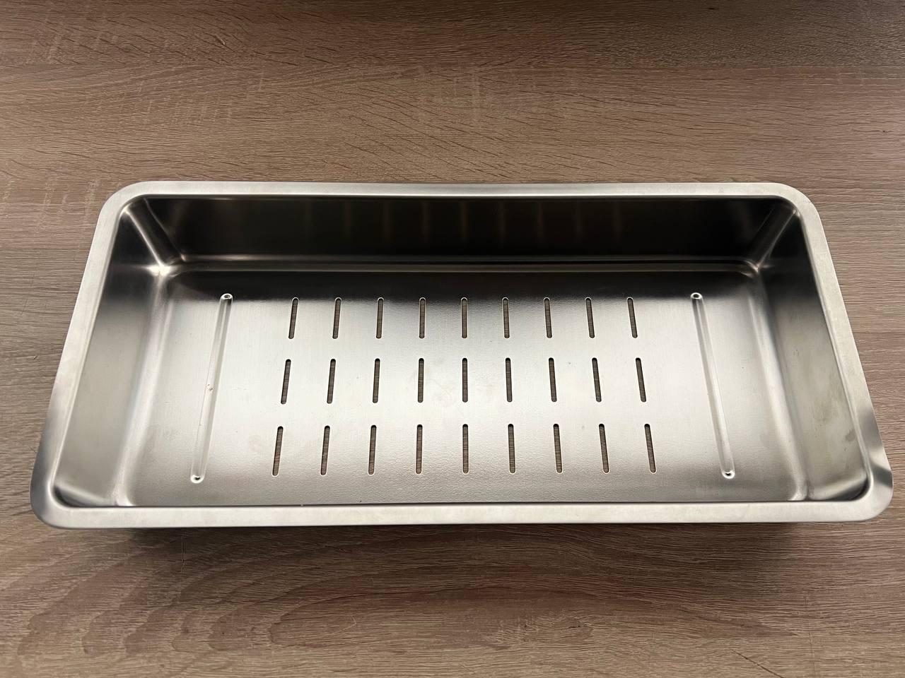 Коландер Blanco виготовлений із нержавіючої сталі та призначений для використання з мийками серії Etagon. Завдяки розміру 387x187 мм він ідеально підходить для зручного миття або зціджування овочів, фруктів і макаронів безпосередньо в чаші мийки. Високоякісний матеріал забезпечує довговічність, стійкість до корозії та простоту в догляді. Коландер стане практичним доповненням до кухонного простору, покращуючи комфорт щоденного користування мийкою.